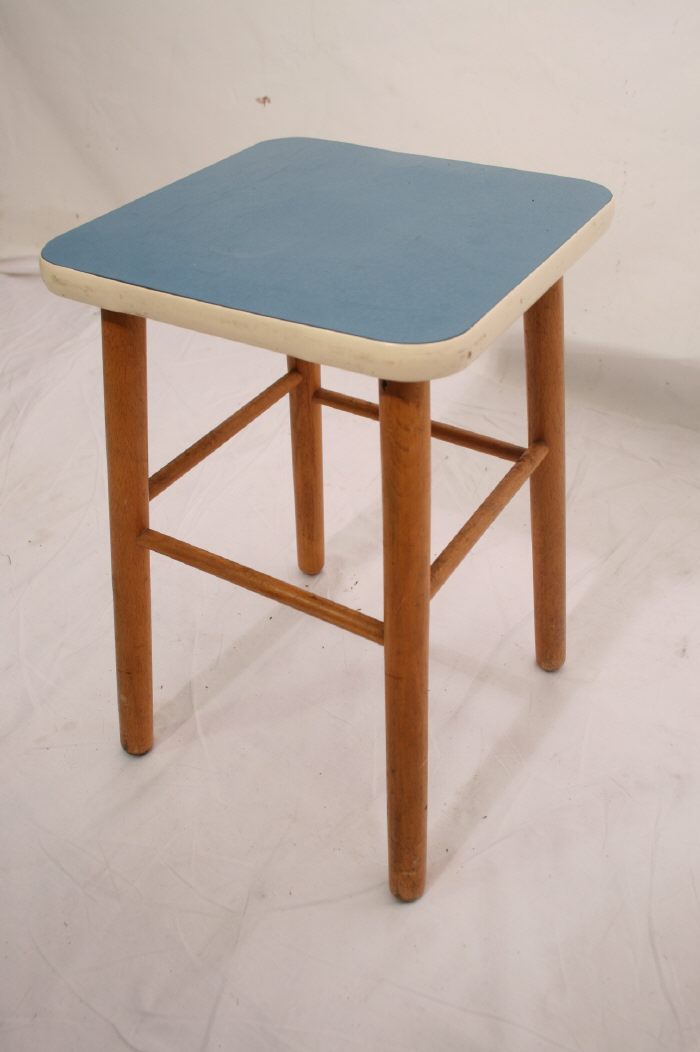 Kultiger 50er Jahre eckiger Hocker / Beistelltisch / Sitzhocker / Blau