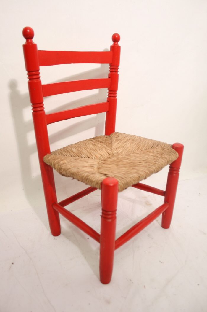 Wunderschöner nostalgischer Kinder Stuhl / Binsgeflecht / Rot