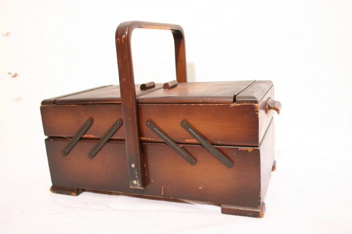 Wunderschöne aufklappbare Art Déco Nähkiste / Werkzeugkiste