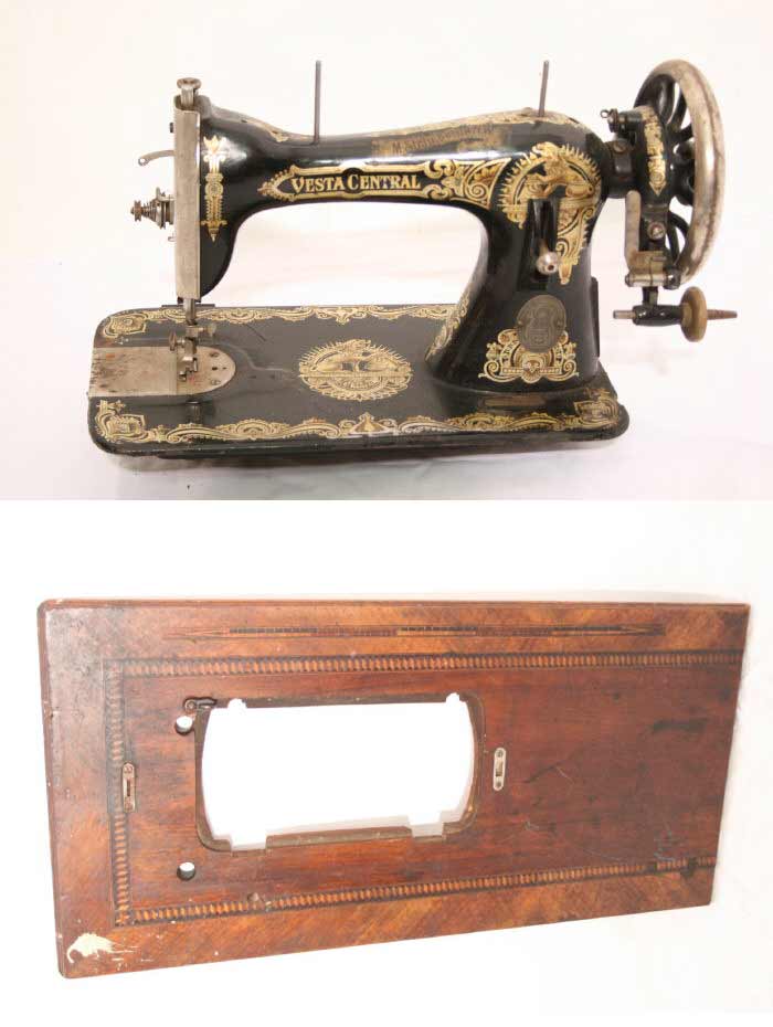 Tolle antike Nähmaschnie / Intarsien / Intarsierte Tischplatte