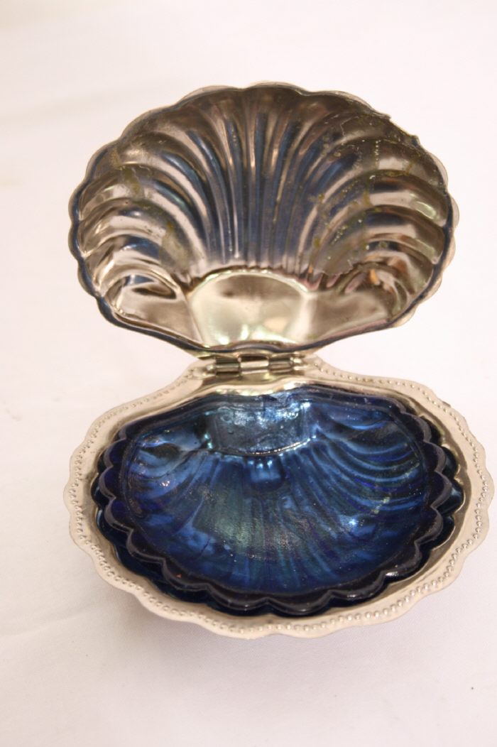 Toller ausgefallener Seifenschale / Zuckerdose / Muschel / Glaseinlage