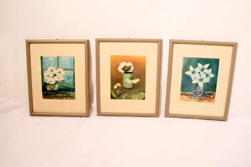 3 Wunderschöne farbige Bilderserie / Signiert / Rahmen