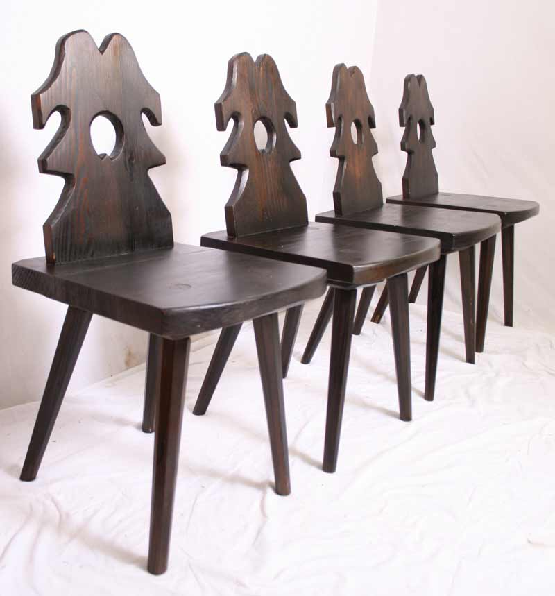 4 Wunderschöne Brettstühle / Verkeilt / Mittelalter Stil / Massiv