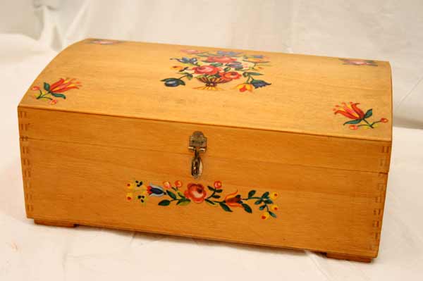 Schöne Holzschaltulle / Runddeckel / Schatztruhe