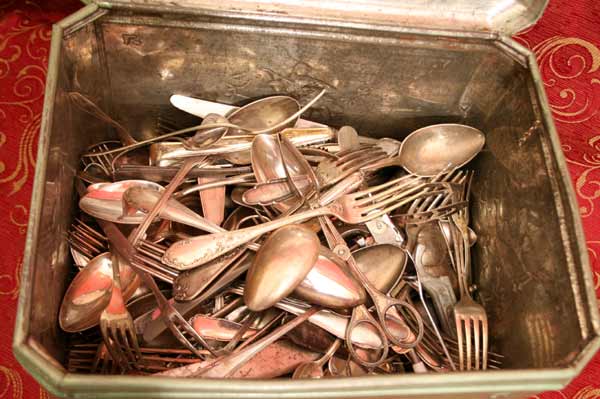 Großer Posten antikes Besteck / über 150 Teile / Tolle Blechkasten