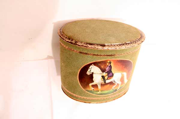 Tolle ovale Blechdose mit Samtbezug u. Bild / Schimmel
