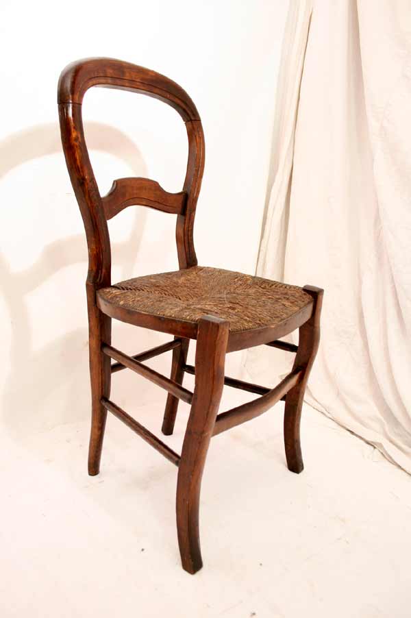 Schöner antiker Wirtshausstuhl / Medalion Stuhl / Binsen Geflecht