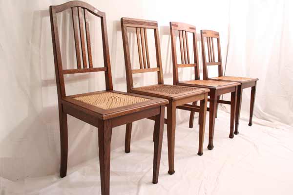 4 Schöne antike Jugendstil Stühle / Geflecht / Massiv