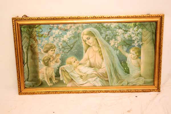 Schönes antikes Farbbild / Maria mit Jesuskind und Engeln