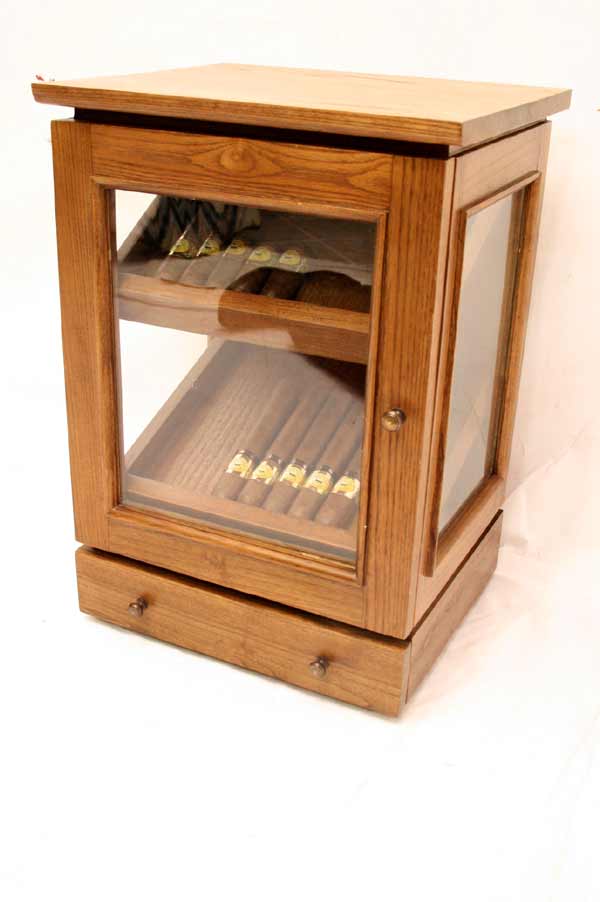 Ausgefallene Zigarren Glas Vitrine / Schublade / Teak Holz