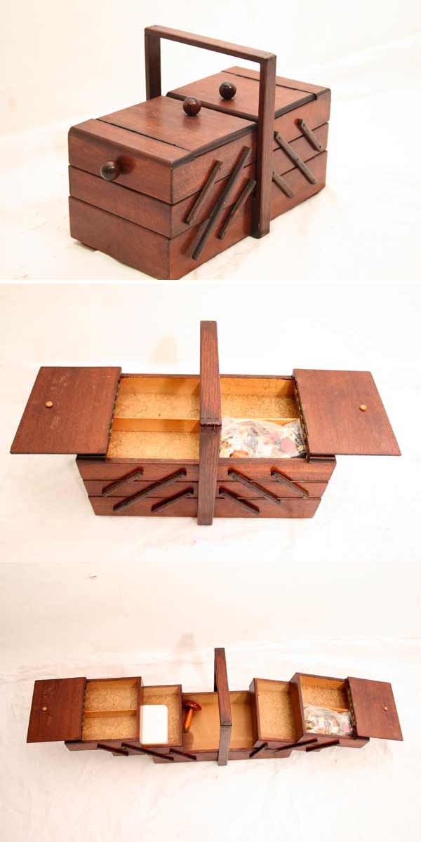 Wunderschöne nostalgische Nähkiste Nähkasten tragbare Werkzeugkiste Aufklappbar Zum Aufarbeiten