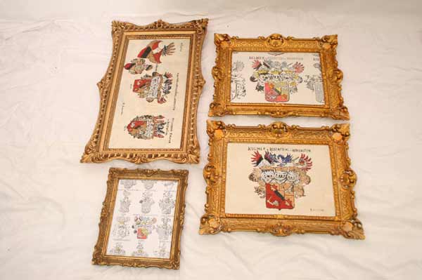 Familien Wappen 4 Bilder / Gemälde Verzierte Prunk Rahmen