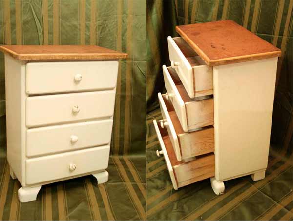 Wunderschöner Art Dèco Beistellschrank / 4 Schubladen / Alt Weiß