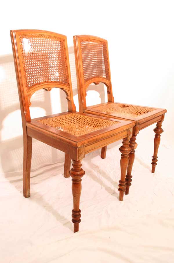 2 schöne Gründerzeitstühle / Geflecht / Nußbaum