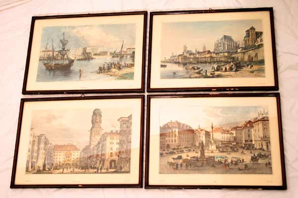 4 antike Farb Kunstdrucke / Wien / Köln / Insbruck