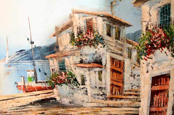Schönes altes Öl Gemälde auf Leinen / Meditran