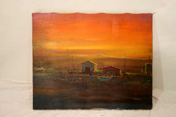 Schönes altes Gemälde auf Leinen / CASADEI / Sonnedämerung am Meer