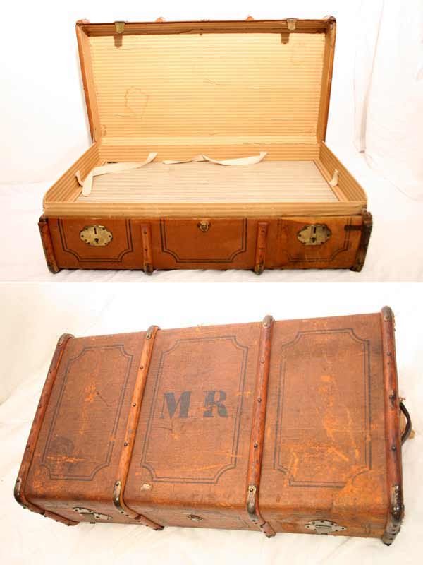 Große antike Überseetruhe / Droschkenkoffer / Einlage