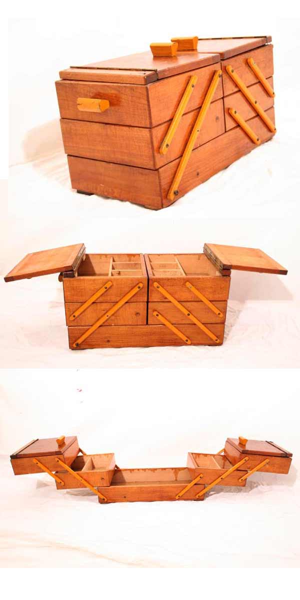 Schöner antiker aufklappbarer Nähkasten / Nähkiste