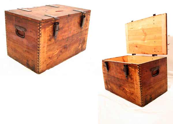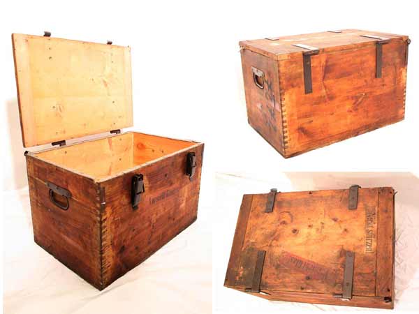 Schöne antike Transportkiste / Holzkiste / Eisengriffe II