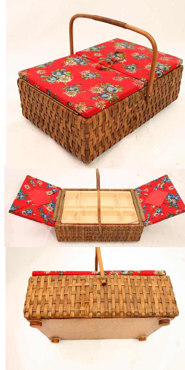 Ausgefallener Nähkorb / Nähkästchen aus den 50er Jahren / Einlage