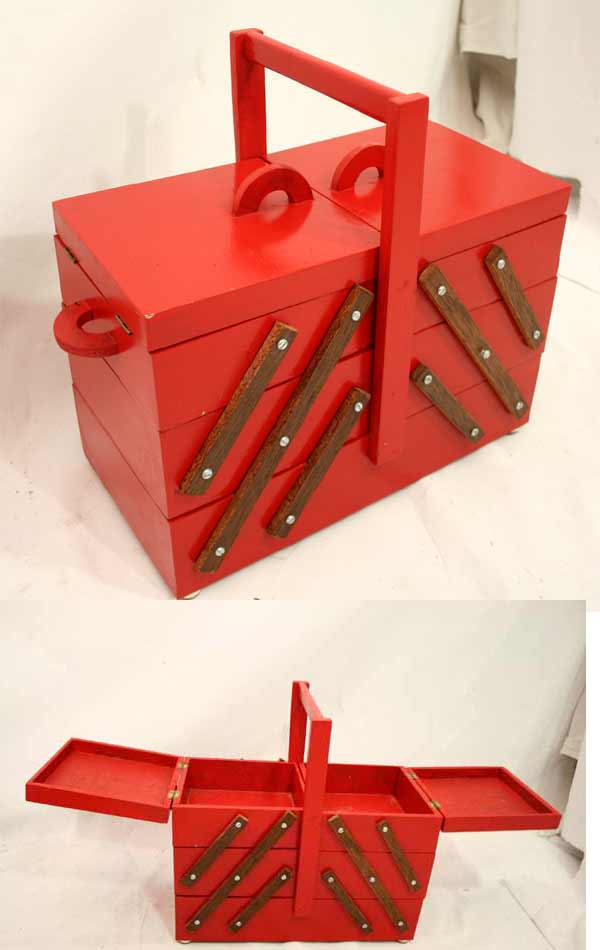 Schöne alte Nähkiste / aufklappbar / Nähkiste / Rot