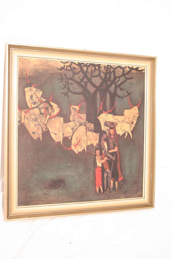 Schönes Druckbild im Holzrahmen / Rinder / Kühe