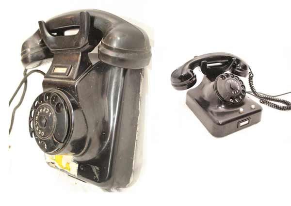 2 antike Telefone / Wandtelefon schwarzes Telefon