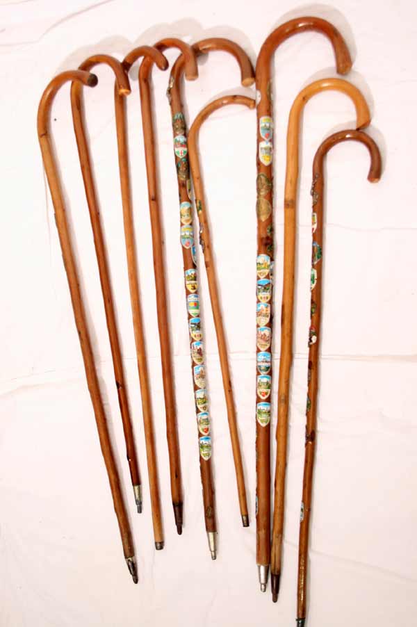 9 alte und antike Wanderstöcke / Stock / Viele Wappen