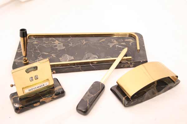Schönes altes Schreibtisch Set / Ewiger Kalender / Marmor