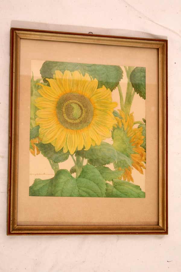 Schönes altes Aquarell / Bild / Sonnenblume / Holzrahmen