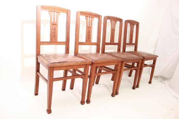 4 wunderschöne Jugendstil Stühle / Lederstühle