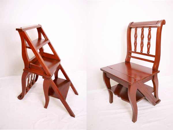 Bibliothekstuhl / Bibliothekleiter / Umwandelbar / Kolonial / Mahagoni / Neu