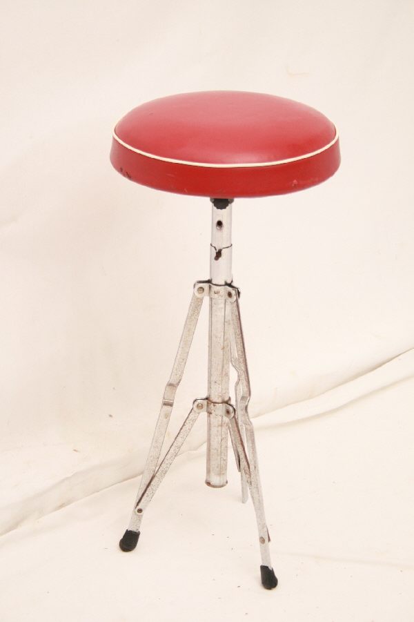 Seltener runder Musiker Hocker / Zusammenkappbar / 50er