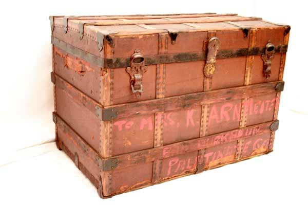 Urige Runddeckeltruhe / Truhe / Gründerzeit
