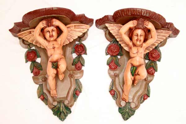 2 Schöne alte Engle Putten / Handgeschnitzt / Bauernmalereien