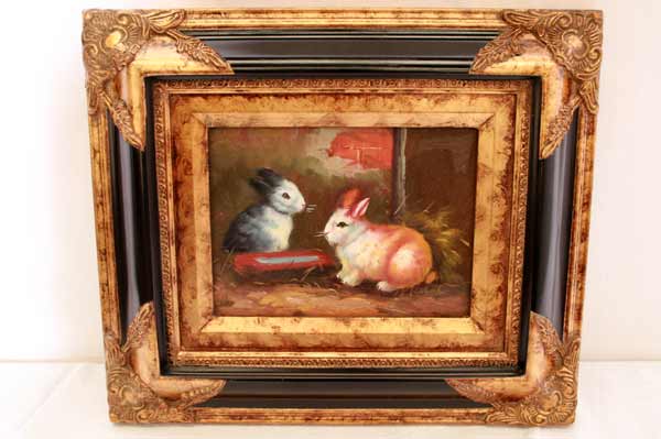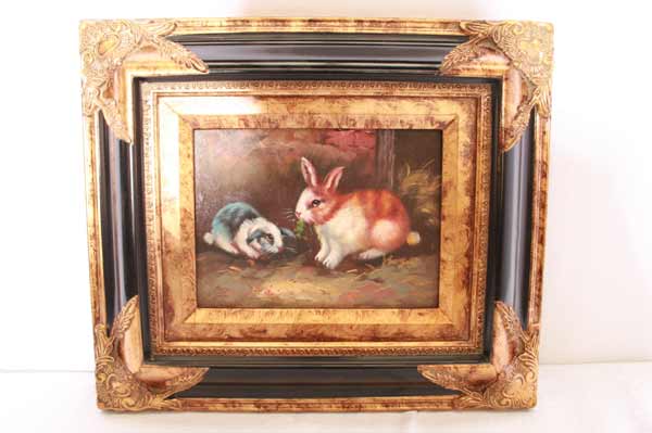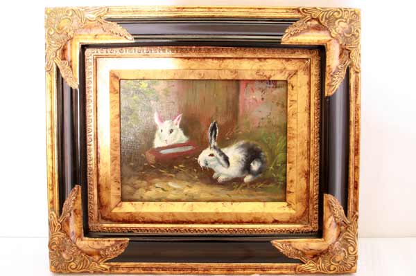 Schönes Öl Gemälde / Osterhasen / Barocker Prunkrahmen