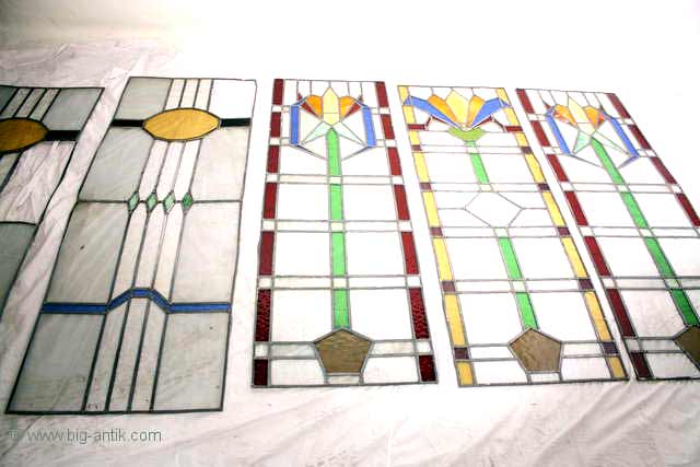 SELTEN! 5 Große Bleiglas Fensterscheiben / Farbglas für Fenster / Kirchen / Vill