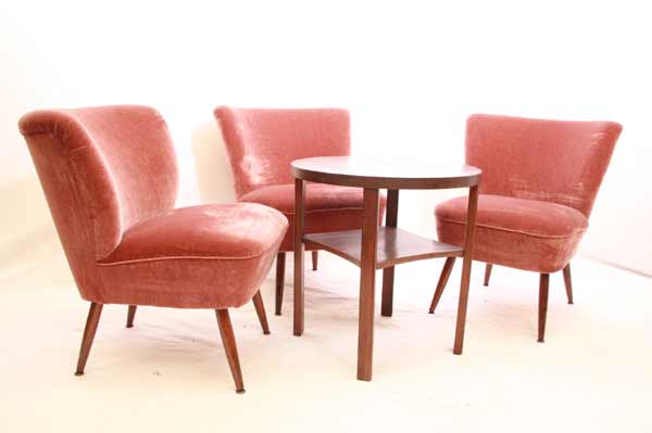 3 Wunderschöne Coctail-Sessel + Rauchtisch / 50er Jahre