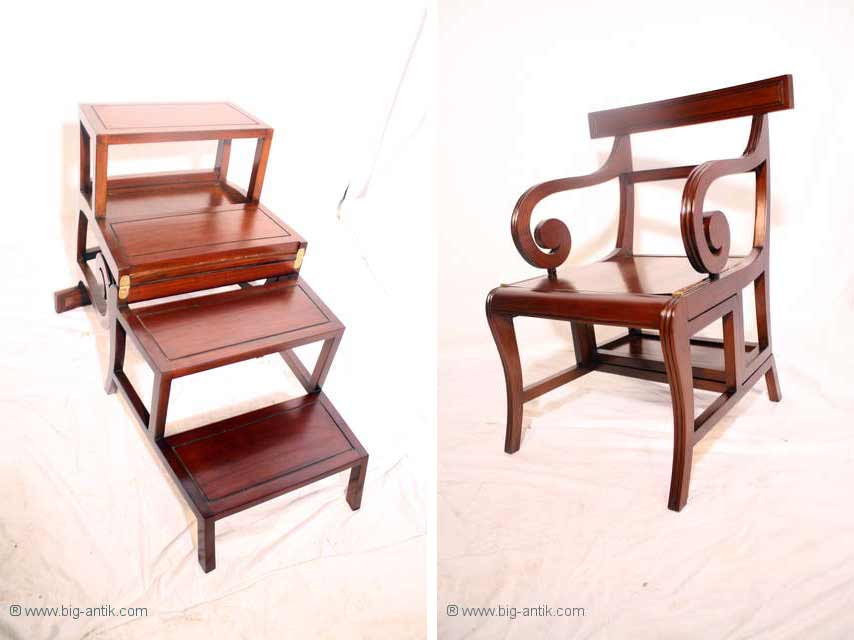 Bibliothekstuhl / Bibliothekleiter / Umwandelbar / Kolonial / Mahagoni