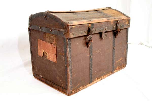 Antike kleine Reisetruhe / Runddeckeltruhe