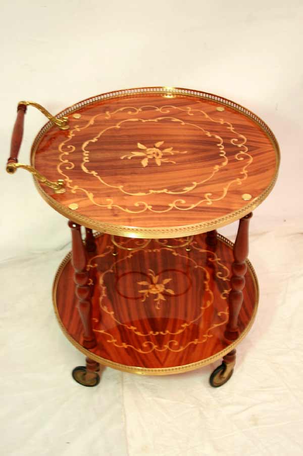 Eleganter runder Barwagen / Messing / Intarsien