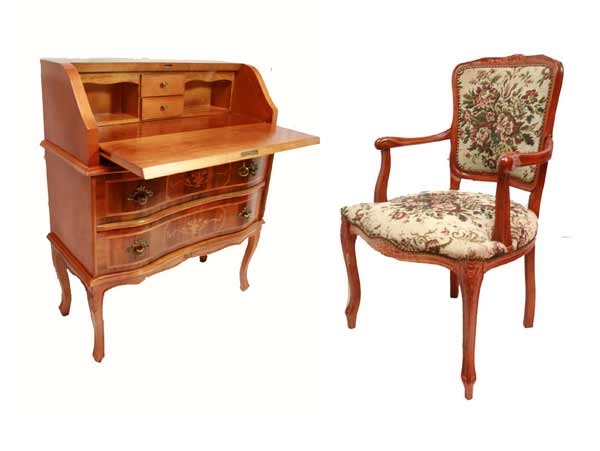 wunderschöner Chippendale Sekretär mit Armlehnenstuhl