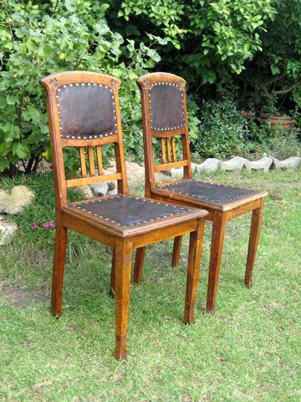2 schöne Jungendstil Stühle / Lederstühle