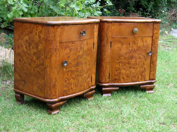 2 wunderschöne Art Deco Nachtschränke / Wurzelholz