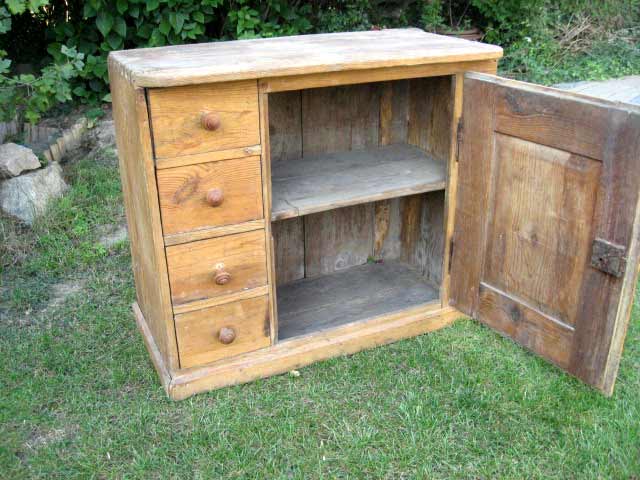 Uriger Biedermeier Küchenschrank / Weichholz