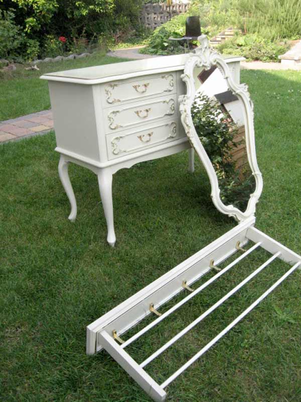 Traumhafte Chippendale Kommode / Alt Weiß + Traumhafter Spiegel + Garderobe