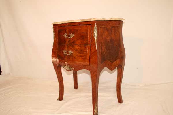 Barock Kommode / 2 Schubladen / Marmorplatte / Bauchig