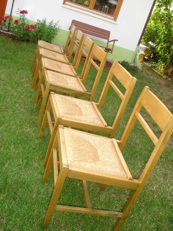 6 schöne Holzstühle / Küchenstühle / Binsengeflächt