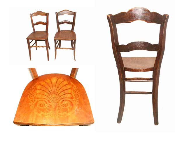 2 Schöne antike Kneipenstühle / Florale Brandmarkung